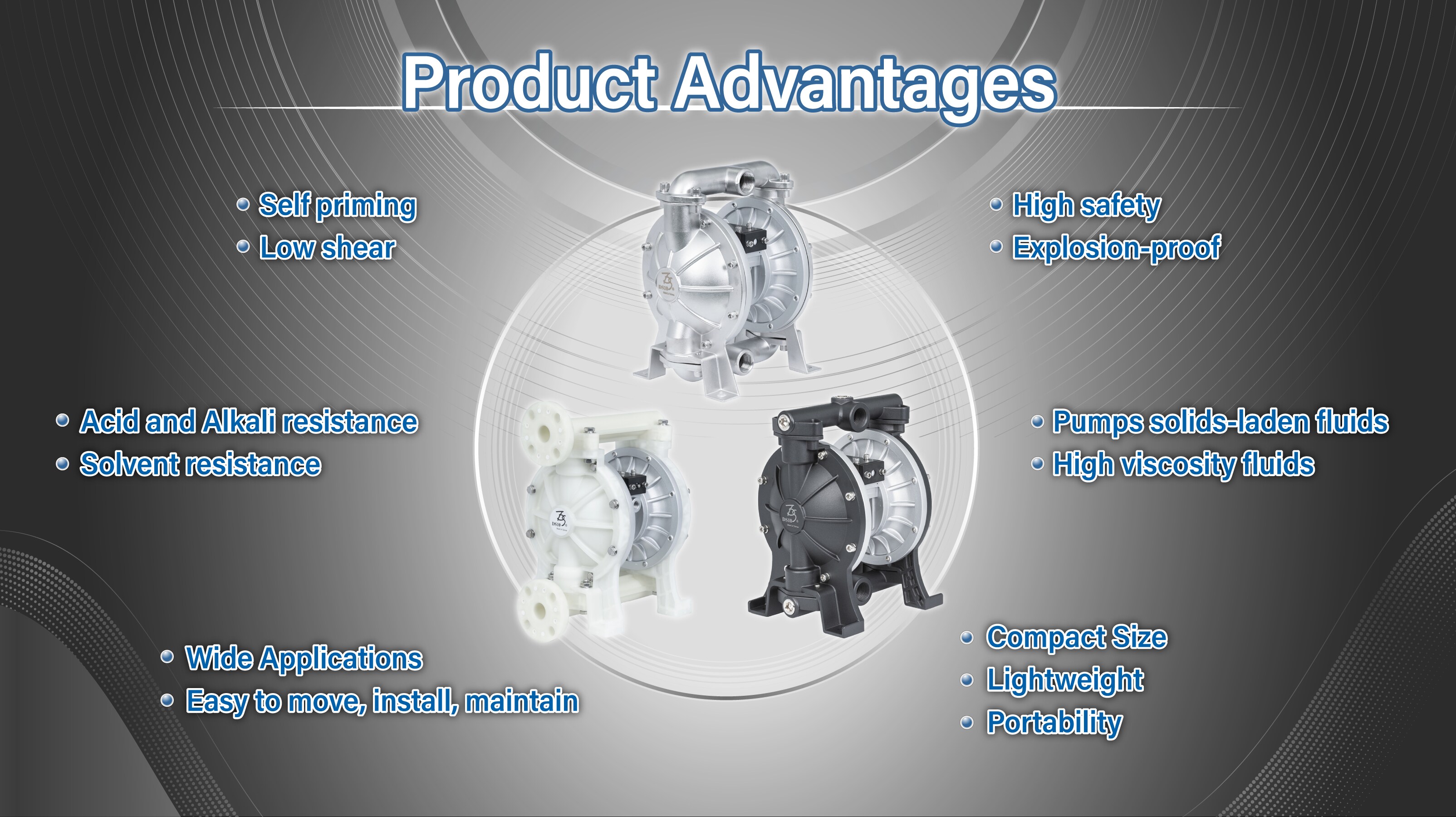 DYI SHENG is a professional manufacturer of air-operated double diaphragm pumps in Taiwan. Dedicated to product research and development, we now have CE, ATEX, and ISO9001 quality certifications. We take high-quality, swift service, innovative technology, honesty, and trustworthiness as our guiding principles.